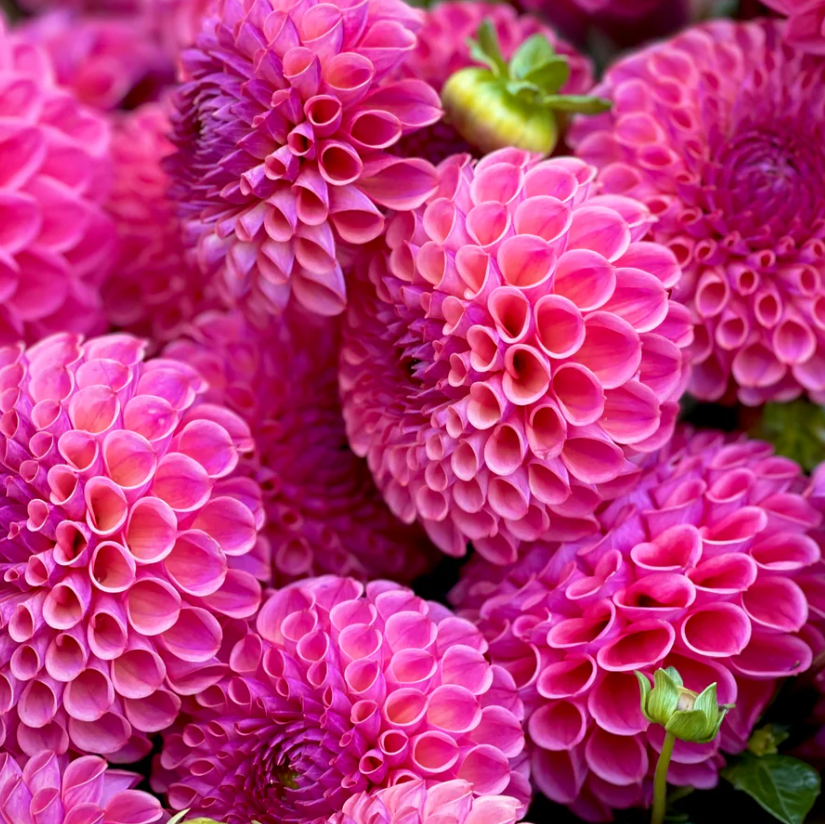Caitlin’s Joy is a gorgeous smokey magenta ball dahlia with hints of purple, coral and soft pink. The color can look different, between the morning sunrise to high noon direct light. That's why we like it so much, because it is extremely versatile in color pairing with other flowers.