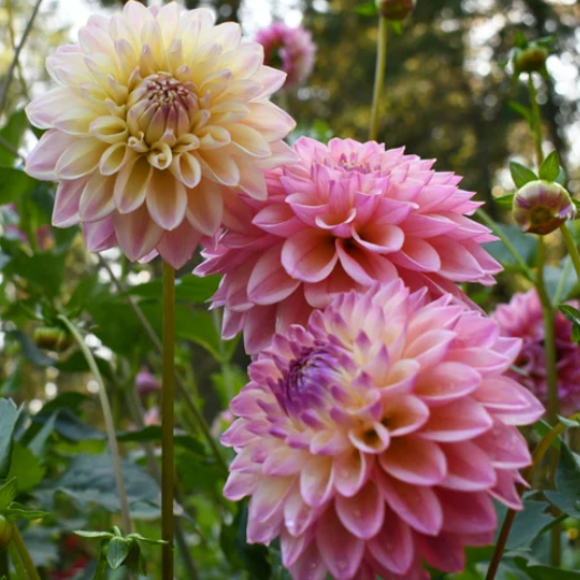 Coralie is a bit of a shape shifter dahlia based on its blooming maturity, ranging in various shades of pink with sometimes undertones of creamy peaches and soft purples. If overcast one weeks, stems will be darker pink. If full sun in the field, they tend to be white washed. I don't feel this should be a deterrent to florists or growers, as its cultivated qualities are so positive, a little change in color variety is welcomed. I haven't seen anything quite like it, and that's why I added to the Barnswallow collection. It also has striking dark foliage and stems, something I watch out for in initial month tuber investment.