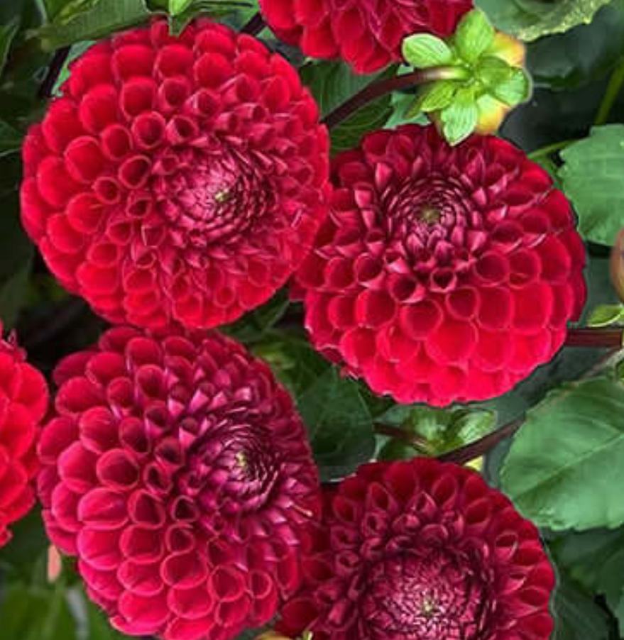 Cornel features lovely, popping cherry-red, velvety flowers contrasting beautifully with the dark green foliage. It's a dahlia Farmer Meredith can rely on, with the plant constantly throwing blooms combined with great tuber production each year. Chimacum Night is a close cousin to Cornel, but a tad smaller in form and darker in color. If you're wanting the perfect lipstick red for the fall season, this is a great dahlia both for form and tuber production.