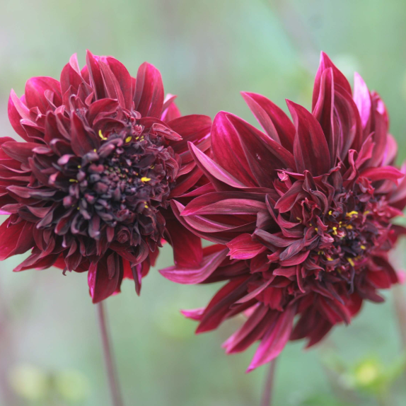 Soulman is an anemone dahlia, but exhibits the habit of an heirloom chrysanthemum and decorative dahlia combo. It has deep red, crimson petals flowing like puffs of layered red velvet cake on strong sturdy stems. Little gold flecks in the center resemble it's anemone biology. Farmer Meredith invested in this dahlia variety, as she wanted a middle ground between a ball and decorative dahlia with a little flair.